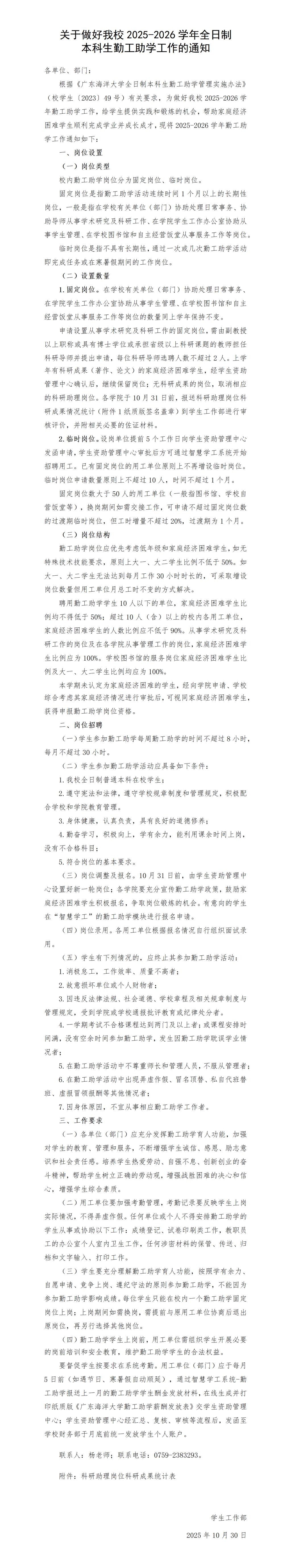 beat365体育官网beat365体育官网2025-2026学年全日制本科生勤工助学工作的通知